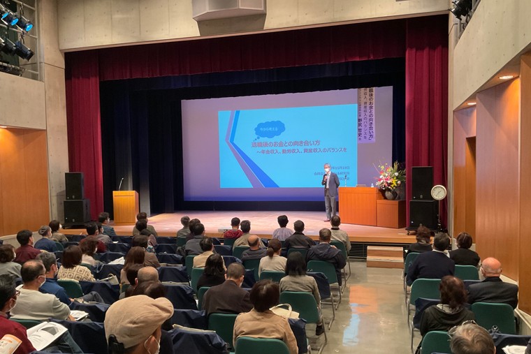 「今から考える 退職後のお金との向き合い方〜年金収入、勤労収入、資産収入のバランスを〜」をテーマに、野尻哲史氏に資産運用を3つのステージや逆算で考えること等について、ご講演いただきました。