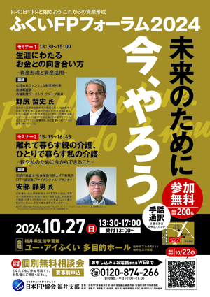 ●不測の事態が発生しイベントを中止とさせていただく場合は、日本FP協会福井支部HPでお知らせいたします。