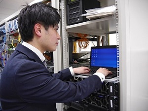 入職後4年間は様々な学校へ金融経済教育を提供する仕事に携わっていましたが、現在は社内SEとしてPCやサーバー等のIT機器やWebシステムの管理業務を担当していります。具体的な業務としては、職員のPCに不具合やトラブルが発生した際に原因を調査し、メーカーへの修理を依頼したり、時には自ら修復したりしています。さらに、システムに不具合や障害が発生していないか定期的なチェックの実施や職員がIT機器を利用する際の全般的なサポートも行っています。
