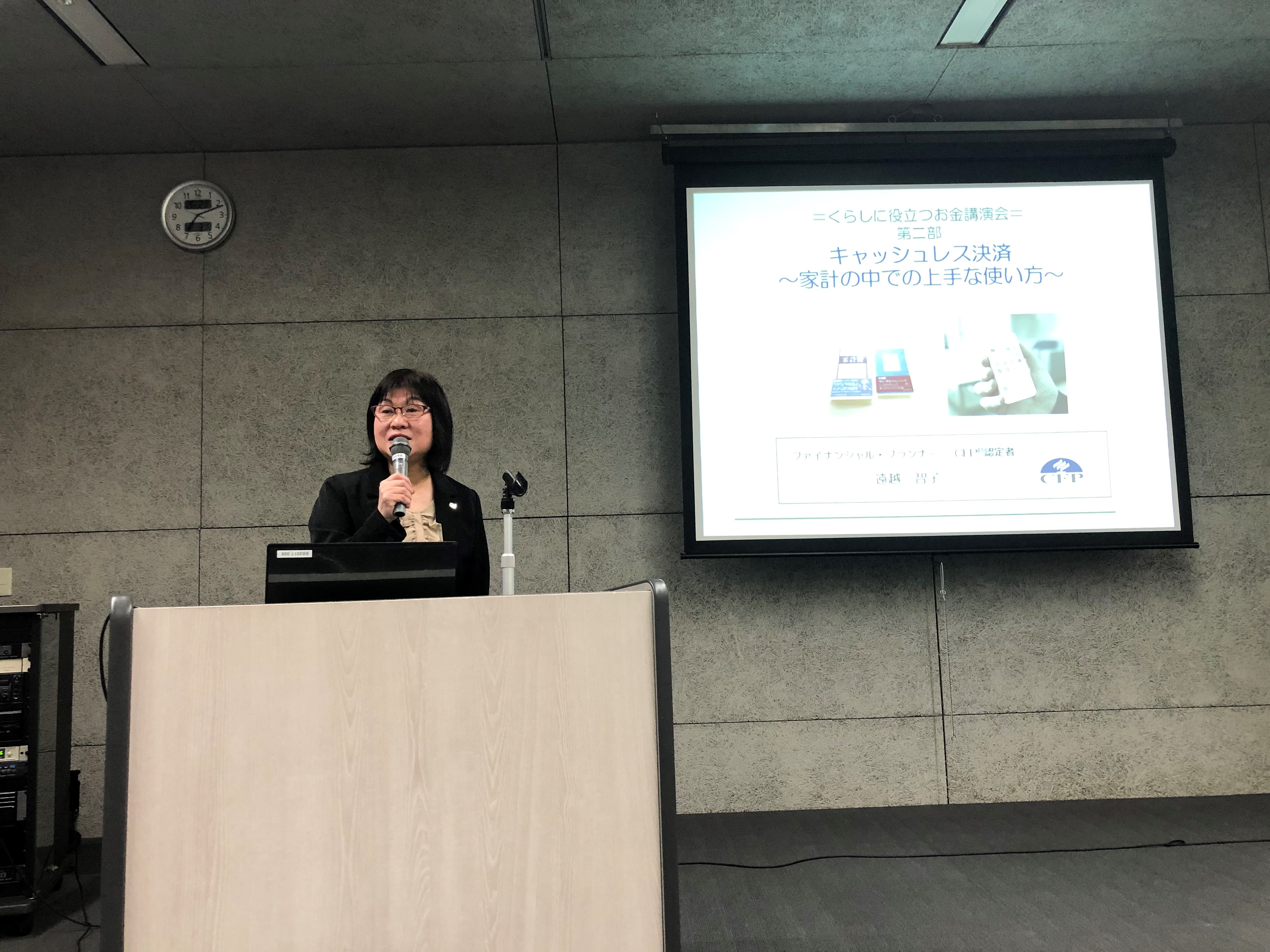 最近話題の「キャッシュレス決済」について、基本的な情報から国内外の導入状況をふまえて分かりやすく解説しました。青森でより良く生活するために、今後キャッシュレスに振り回されるのではなく上手に使いこなせる賢い「キャッシュレス消費者」になれるようお話させていただきました。