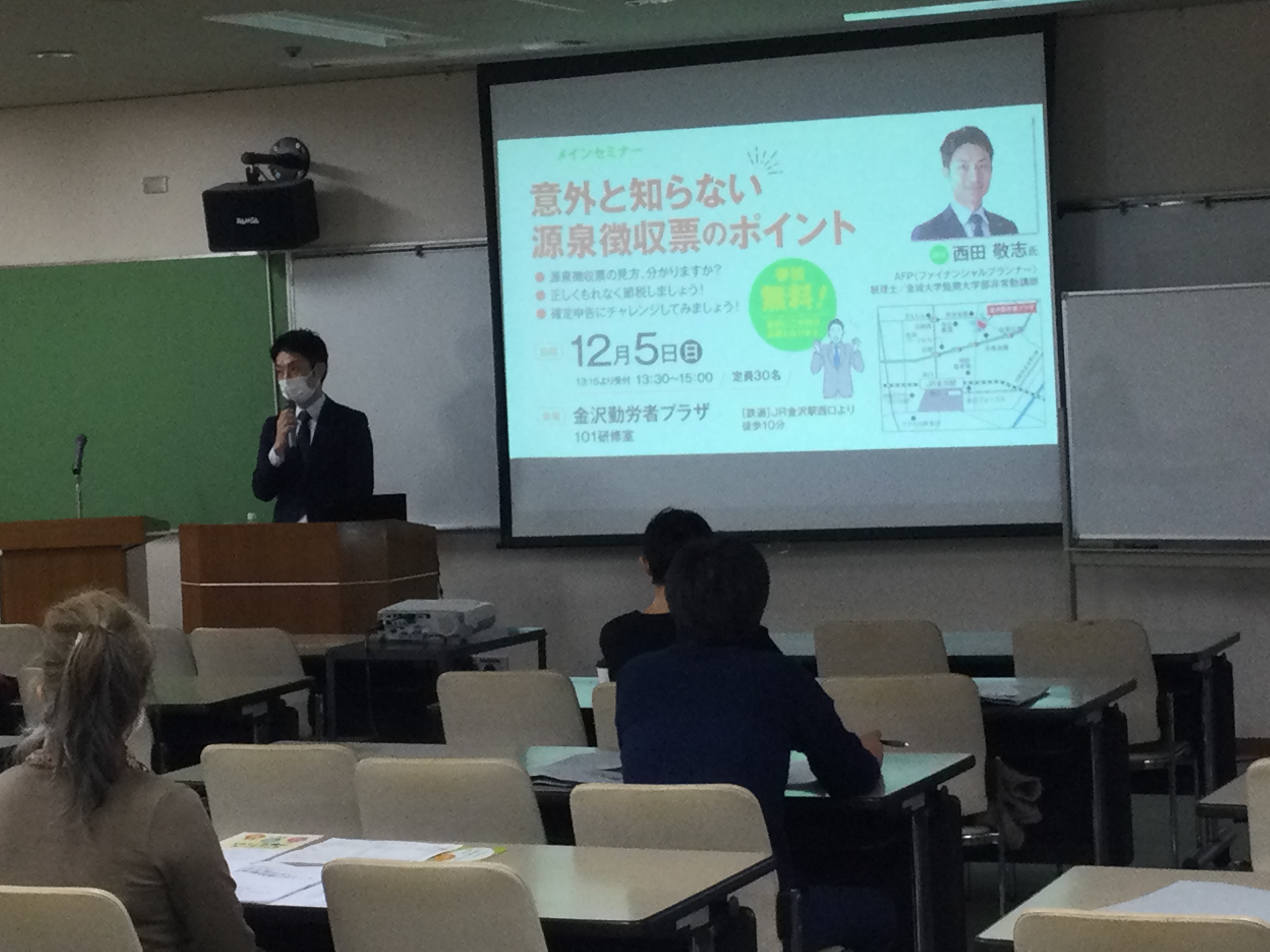 メインセミナーでは、講師としてファイナンシャルプランナー(AFP)で税理士の西田敬志さんが「意外と知らない源泉徴収票のポイント」について詳しくご説明され、参加者のみなさんに理解を深めていただきました。
