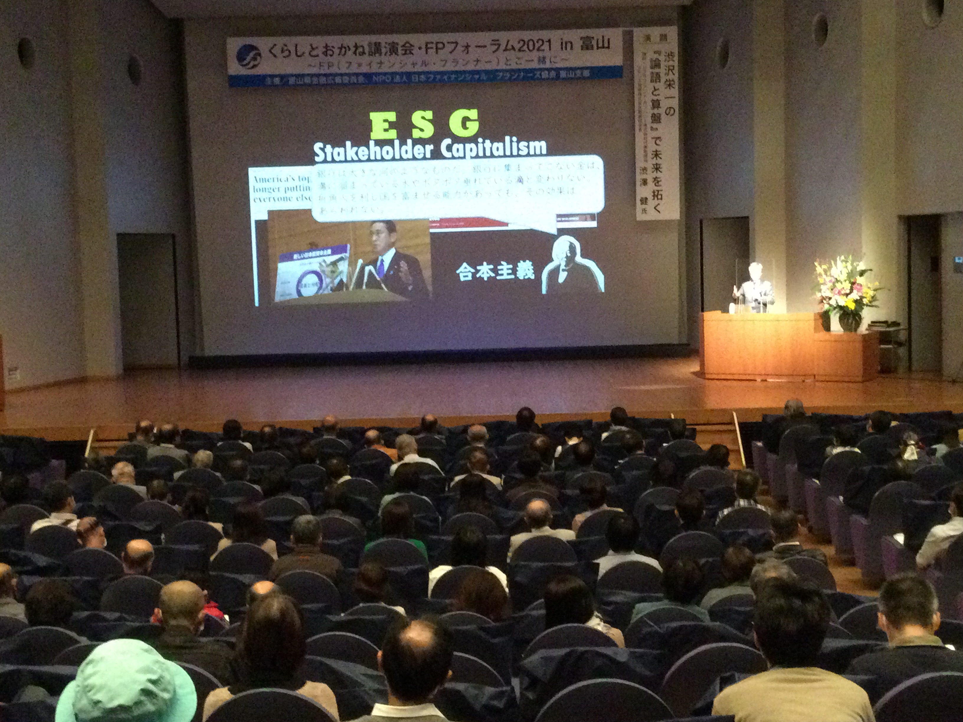 日本FP協会 富山支部主催「FPフォーラム2021 in富山」におきまして、講師に渋澤健氏をお招きし、「渋沢栄一の『論語と算盤』で未来を拓く」と題して、未来に向けた資産形成や投資の重要性等について、ご講演いただきました。