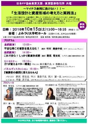 イベント名〜マイナス金利に負けない!!〜『生活設計と資産形成の考え方と実践法』
