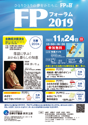 【後援:金融庁・消費者庁・新潟県・新潟市・長岡市・新潟市教育委員会・長岡市教育委員会・新潟日報社・(公社)新潟県社会福祉士会・日本証券業協会・(公社)新潟県宅地建物取引業協会・BSN新潟放送・N S T・TeNYテレビ新潟・UX新潟テレビ21・エフエムラジオ新潟・FM PORT 79.0】