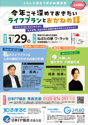 *イベントの中止、変更については「日本FP協会青森支部」ホームページでご案内しますので、当日必ずご確認ください。