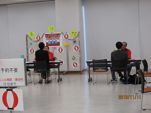 また昨年から始まった「屋台村」では、紅白幕やお祭の装飾で気軽に相談できる屋台の雰囲気を盛り上げました。