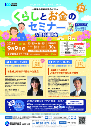 ●不測の事態が発生しイベントを中止とさせていただく場合は、日本FP協会石川支部HPでお知らせいたします。