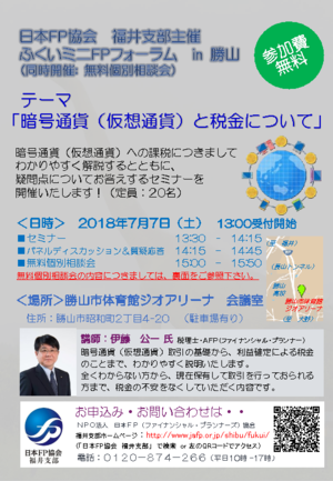 ふくいミニFPフォーラムin勝山「暗号通貨(仮想通貨)と税金について」