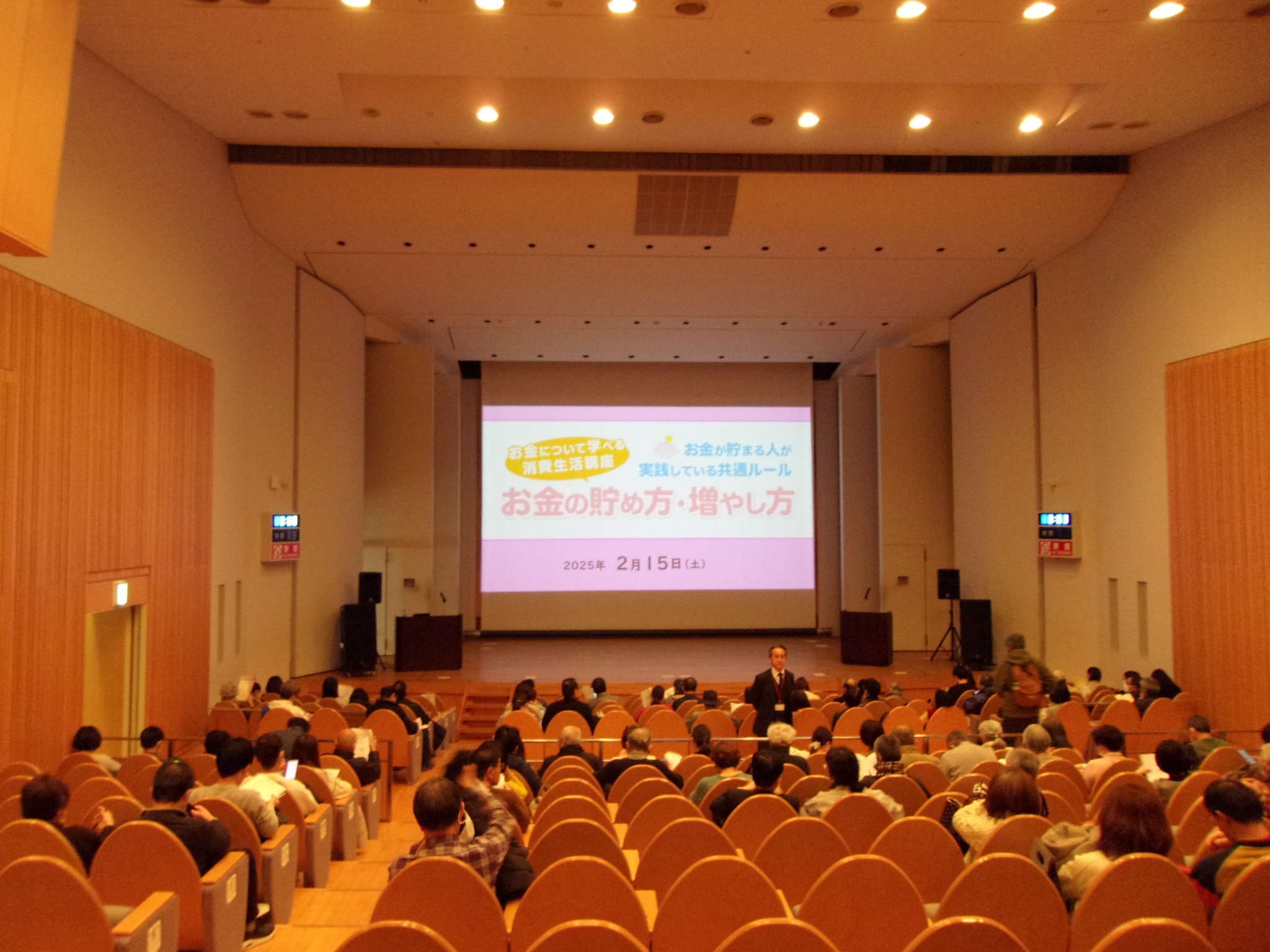 消費生活講座では初めてご登壇いただきました頼藤講師による「お金が貯まる人が実践している共通ルール『お金の貯め方・増やし方』」には、老若男女を問わず、幅広い年齢層のご来場者を迎えることができました。
