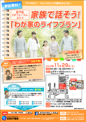 ファイナンシャル・プランナーは皆さまのライフプランをふまえた長期的視点で様々なプランを提案し、夢や目標の実現をサポートする人生設計の総合アドバイザーです。皆さまにとって関心があること、また不安に感じていることなど実際に相談できます。事前にお申込みの際、お名前・ご連絡先・ご希望時間・簡単なご相談内容をお申出ください。個人情報やご相談内容に関する情報は秘密厳守いたします。相談員には、相談者の連絡先は告知しません。