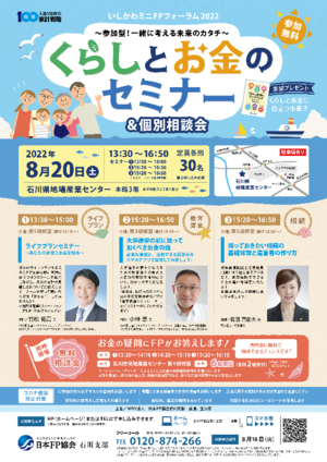 ●不測の事態が発生しイベントを中止とさせていただく場合は、日本FP協会石川支部HPでお知らせいたします。