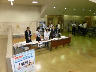 広報は複数回目に留まることが肝要である為、対象地域に集中的に投下した。ポスターは月島駅通路と都バス、地域循環バスに出稿。チラシは中央区のご協力により区関連施設に設置し、新聞折込も実施した。予算が限られる中でより効果を出す為に、実行委員・講師・協力員が、町内会掲示板へ設置、近隣各店舗(商店、カフェ等)へ設置、ママ友への配布等地域に浸透するように活動した。直前には猛暑の中、月島・勝どき・晴海・佃・豊洲地域の主なマンションにポスティングを実施。主なターゲットであるマンション居住者に確実にリーチするよう心がけた。当日も会場誘導しながら、街頭チラシ配りを行った講師や協力員の方には感謝するばかりである。