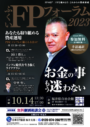 ●不測の事態が発生しイベントを中止とさせていただく場合は、日本FP協会福井支部HPでお知らせいたします。