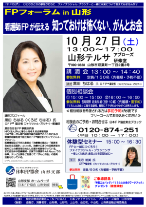 ・やむを得ない事情により開催を中止、変更する場合は日本FP協会山形支部のHPに掲載します。