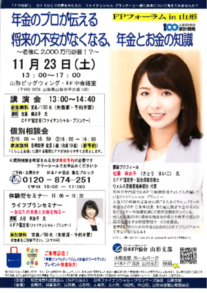 ・やむを得ない事情により開催を中止、変更する場合は日本FP協会山形支部のHPに掲載します。