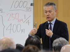 内容:世界の人口推移から始まり、3つの自給率等、資産運用を行う場合、これだけはぜひ知っておいていただきたいポイントをクイズ形式でお伝えいたします。みなさんは何問正解できるでしょうか?目からウロコの内容です! 迫力のある講演会でした。