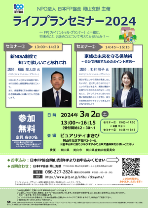 ◇ イベントが中止される場合は「日本FP協会岡山支部」ホームページでご案内しますので、当日、必ずご確認下さい。