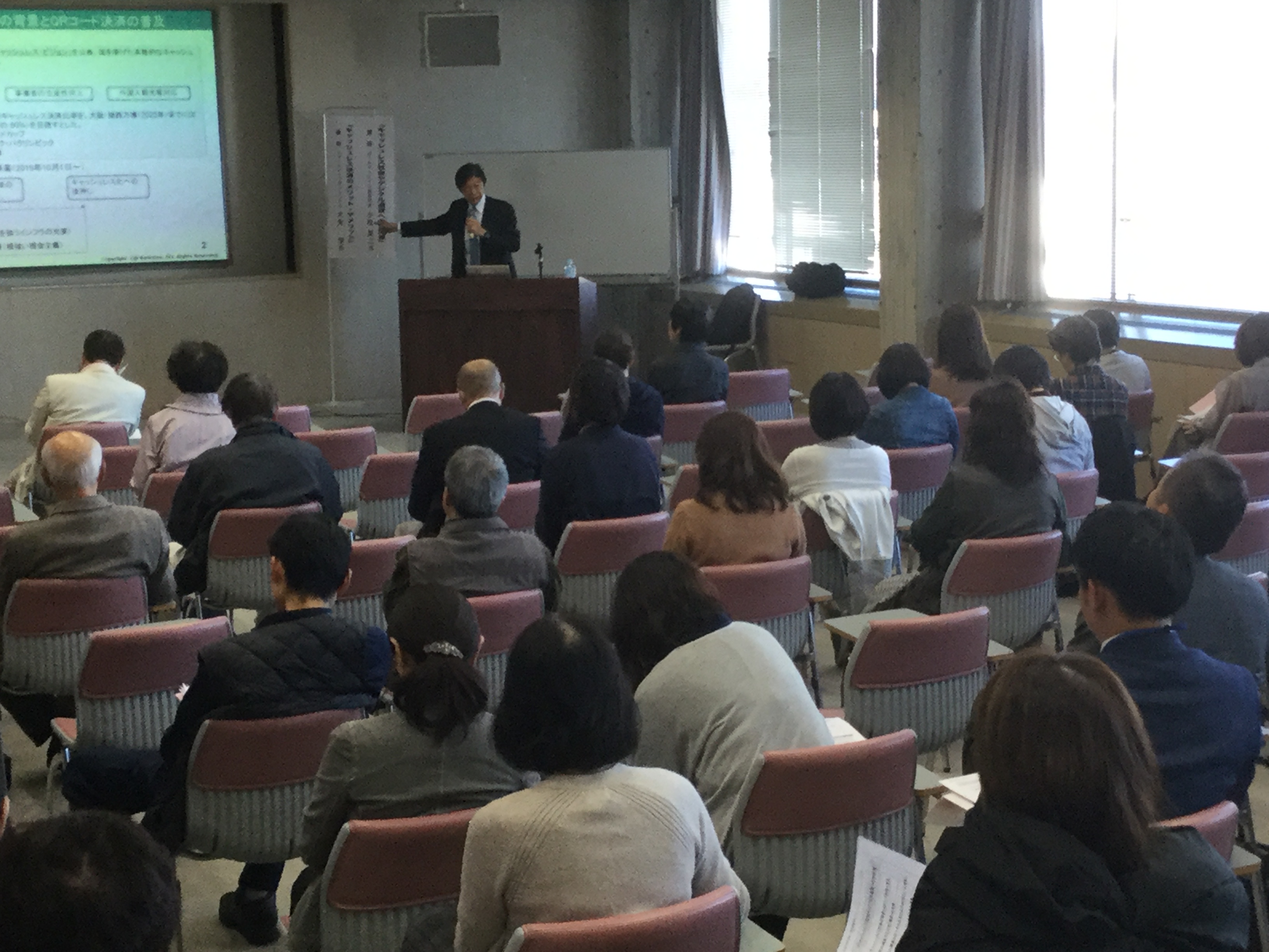 第2部では地元FPの大矢学氏が「キャッシュレス決済のメリット・デメリット」について解説されました。昨今、急速に普及した電子決済についての基礎知識や、メリット・デメリットを事例を交えてお話いただきました。